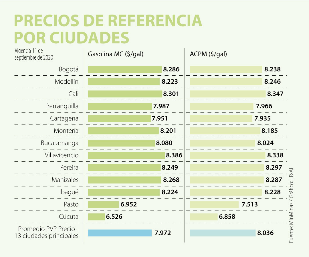 A través de un comunicado, el Ministerio de Minas y Energía anunció la actualización de los precios de los combustibles, que comenzarán a regir a partir de mañana 11 de septiembre de 2020.
