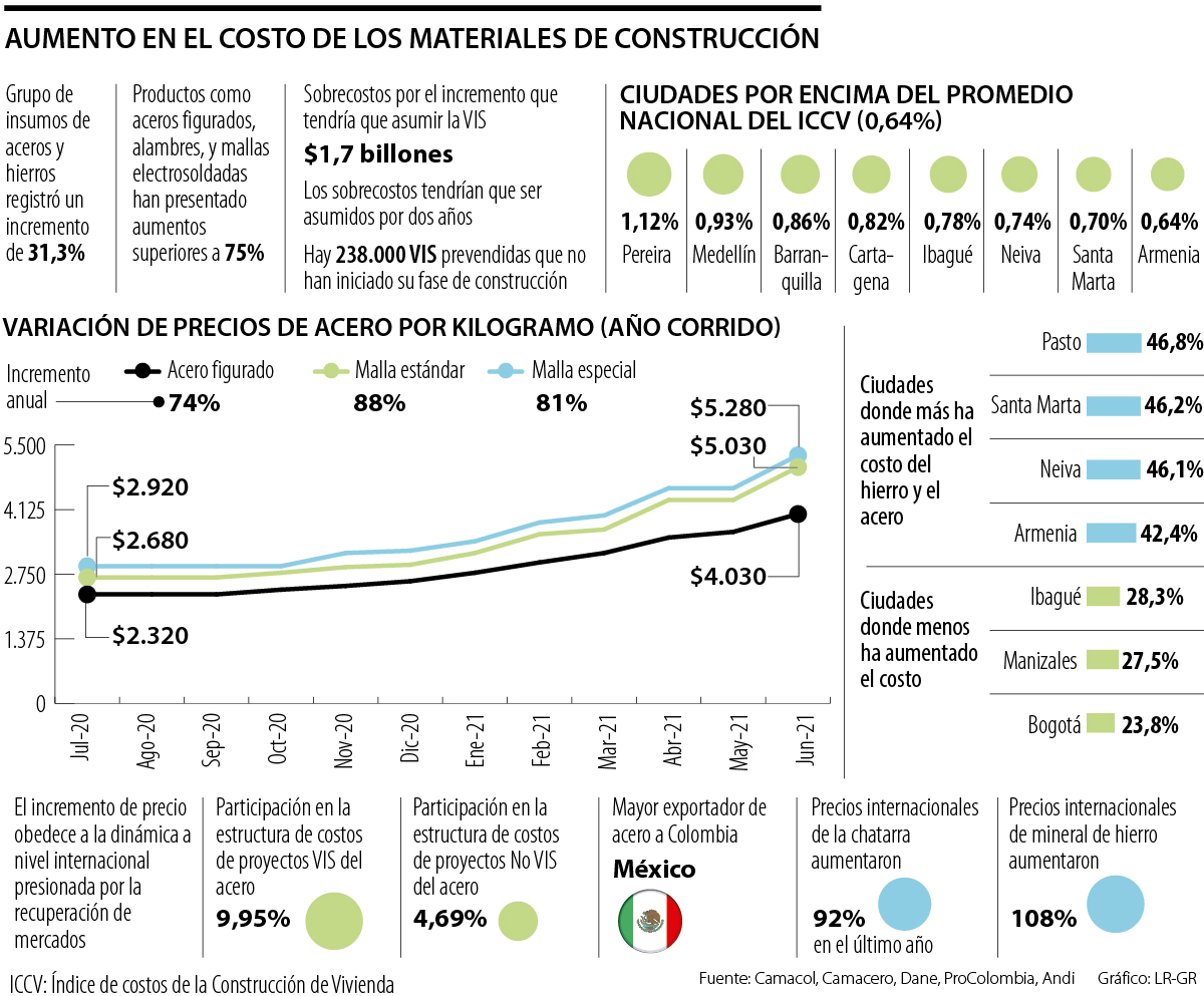 Como consecuencia de una dinámica mundial de recuperación de mercados, el acero y varios productos relacionados tienen un aumento de 75% en sus precios, lo que repercute directamente en el mercado de vivienda y los sobrecostos para los proyectos VIS, especialmente, en los que están cerca a iniciar su etapa de construcción.