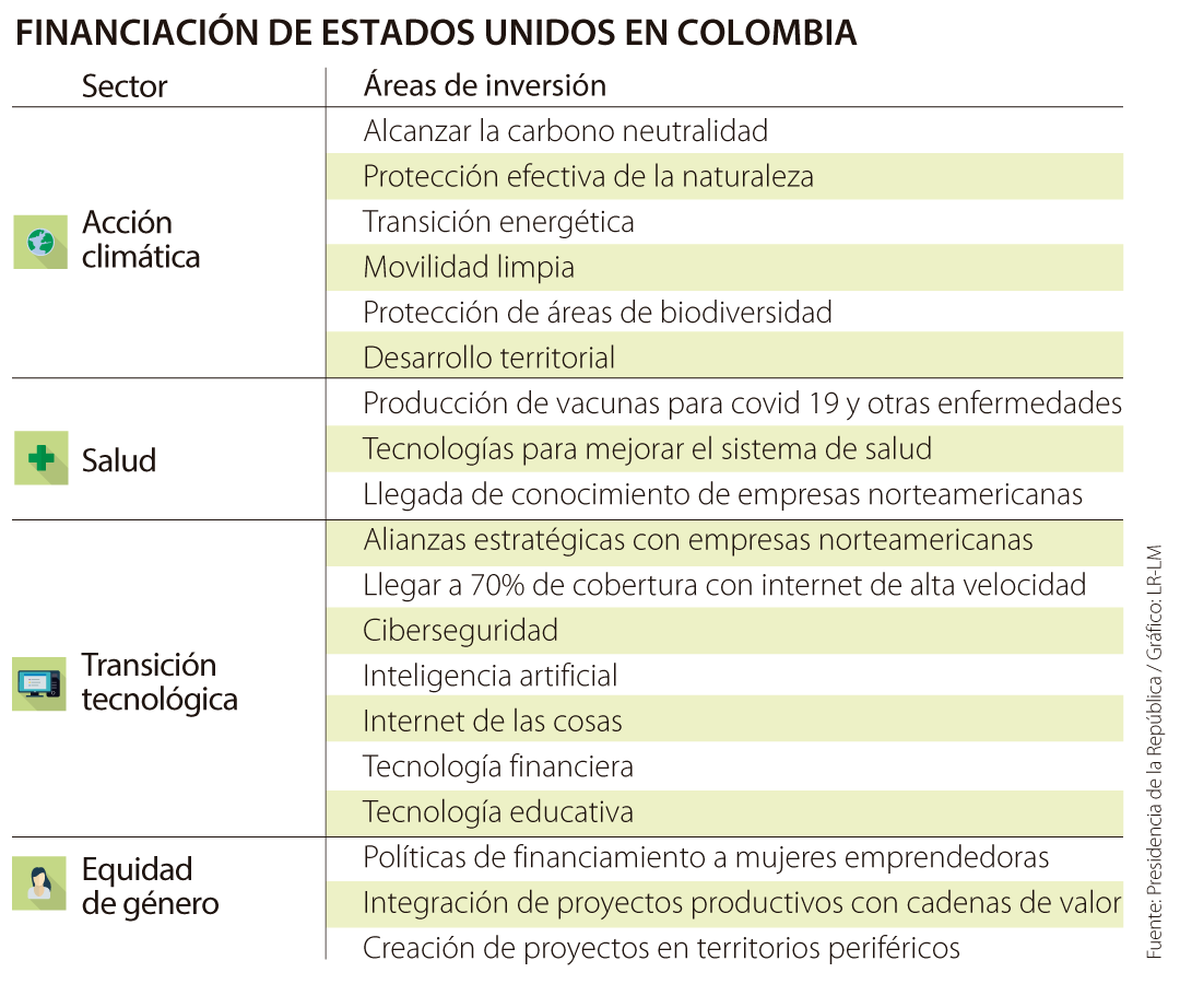 De igual forma, se seguirán financiando el proceso de paz y la política de Paz con Legalidad. “Lo que queremos con el DFC es que ese financiamiento se pueda hacer efectivo en proyectos en distintos departamentos que buscan la sostenibilidad”, dijo Duque.