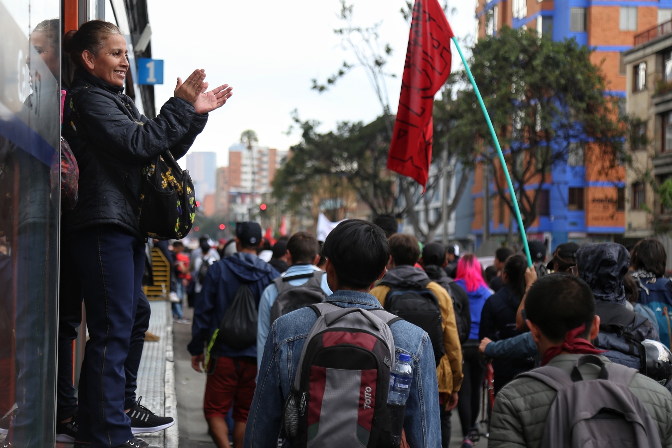 En la Plaza de Bolívar, ha llegado un primer grupo de manifestantes provenientes de la Unión Patriótica.