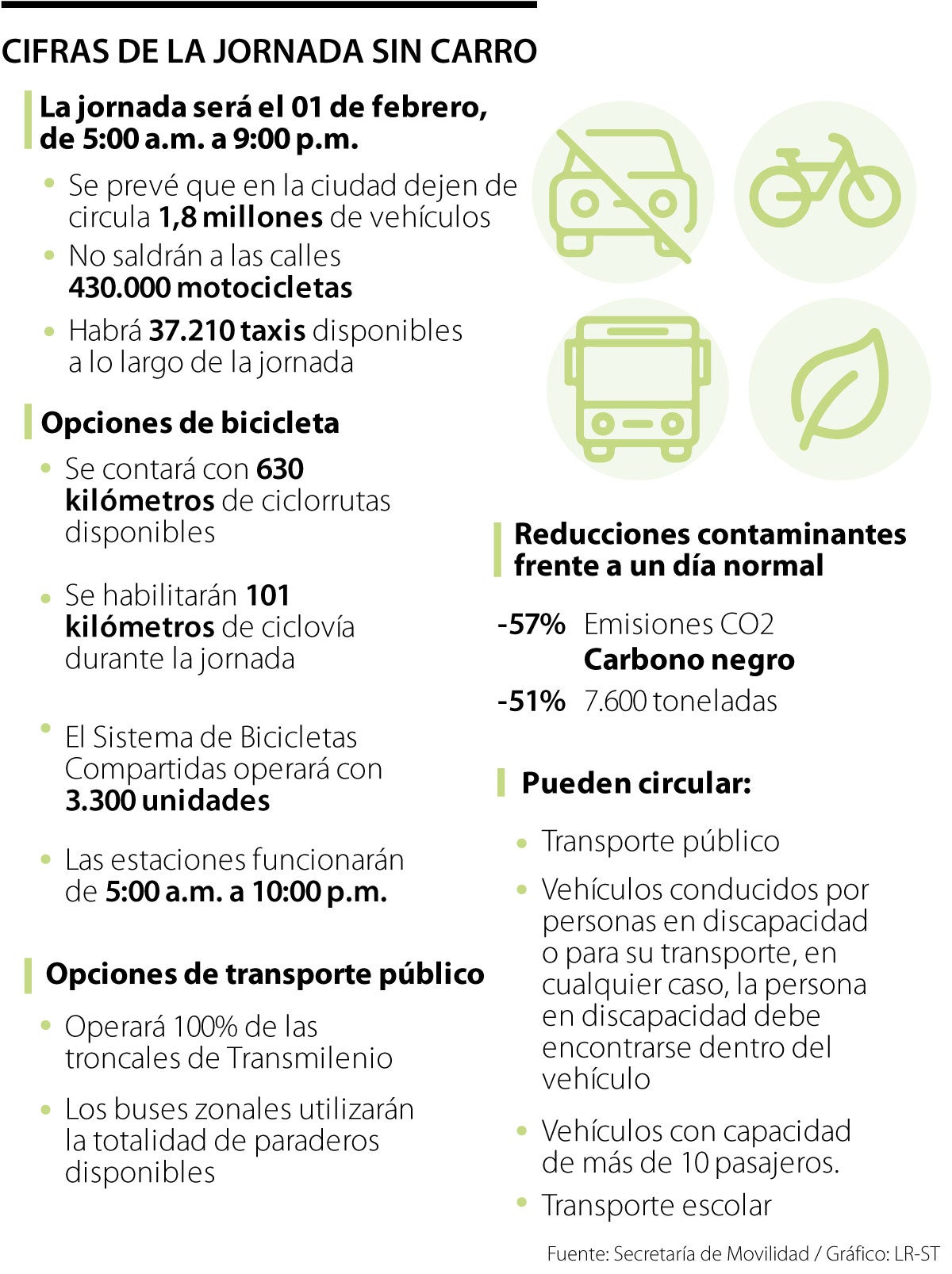 Entre las 5:00 a.m. y 9:00 p.m. se realizará el día sin carro; en la jornada se dispondrá de servicios de bicicletas y transporte público