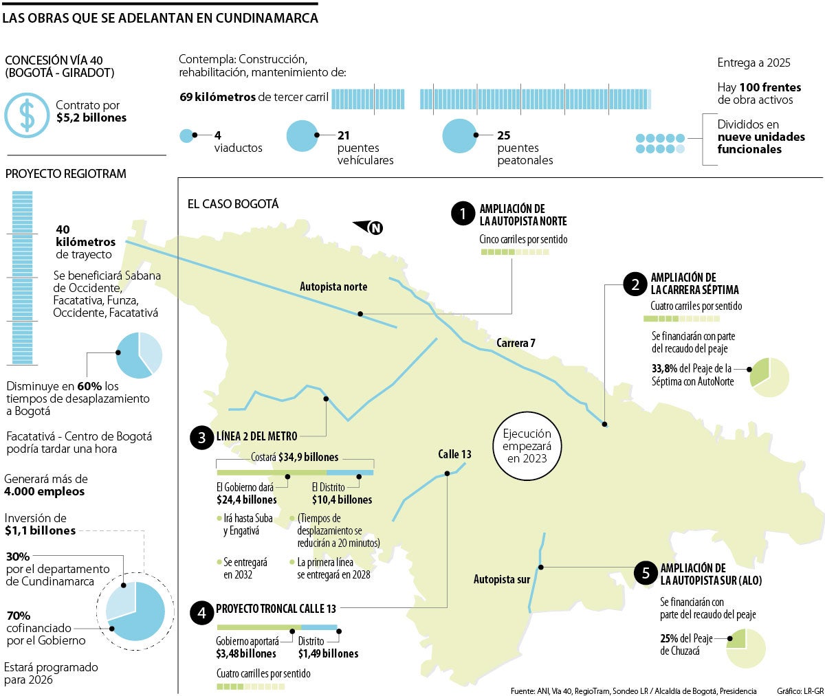 Iniciando por la capital, la expectativa está puesta en el metro. Esta semana a través del Conpes, la obra recibió concepto de favorabilidad, con lo que la empresa Metro de Bogotá podrá contratar operaciones de crédito con banca nacional o multilateral de hasta $7,84 billones para financiar la ejecución de la línea 2.