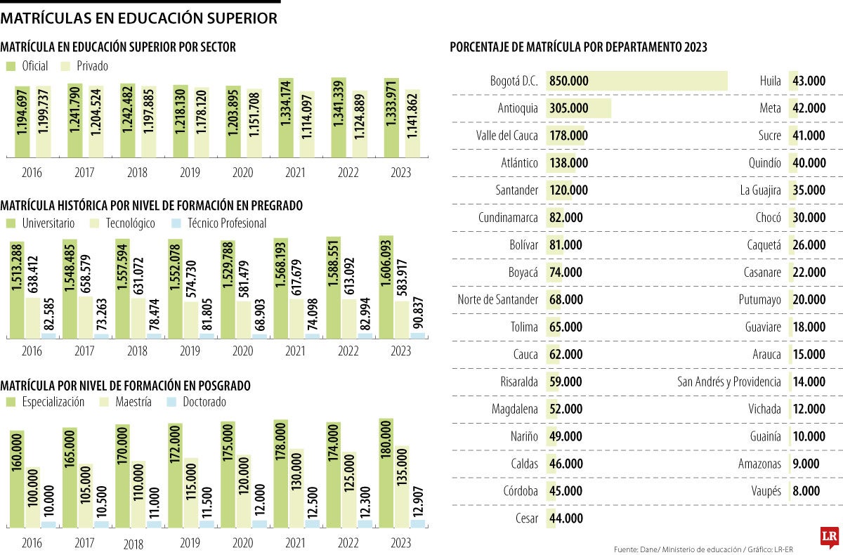 El informe del Dane y el Ministerio de Educación señaló que los cambios más significativos con respecto a 2022 se presentaron en el nivel de posgrado