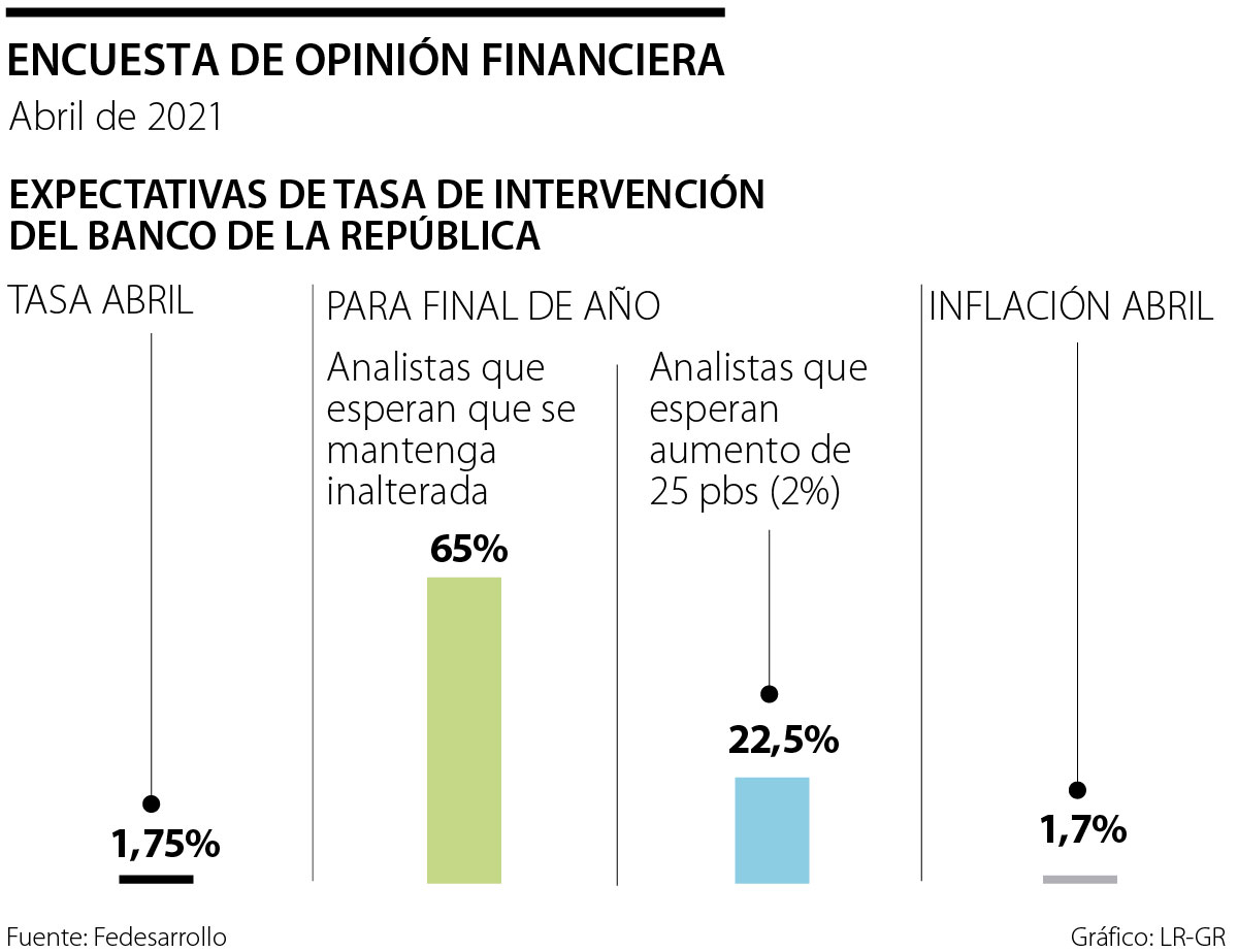 Ahora, sobre la estabilidad el resto del año las expectativas del mercado no son unánimes. De acuerdo con la encuesta de Fedesarrollo, solo un 65% de los analistas consultados espera que la tasa de interés se mantenga en 1,75%.