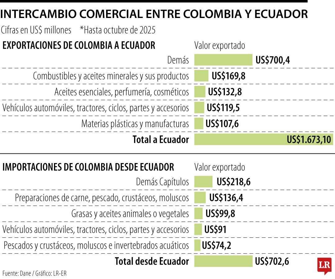 Ecuador es el sexto mayor destino de las exportaciones colombianas y el segundo en las ventas no minero-energéticas, de acuerdo con cifras del Departamento Administrativo Nacional de Estadística, Dane; por ende, esta decisión tendría efectos comerciales importantes en la economías de ambos países.