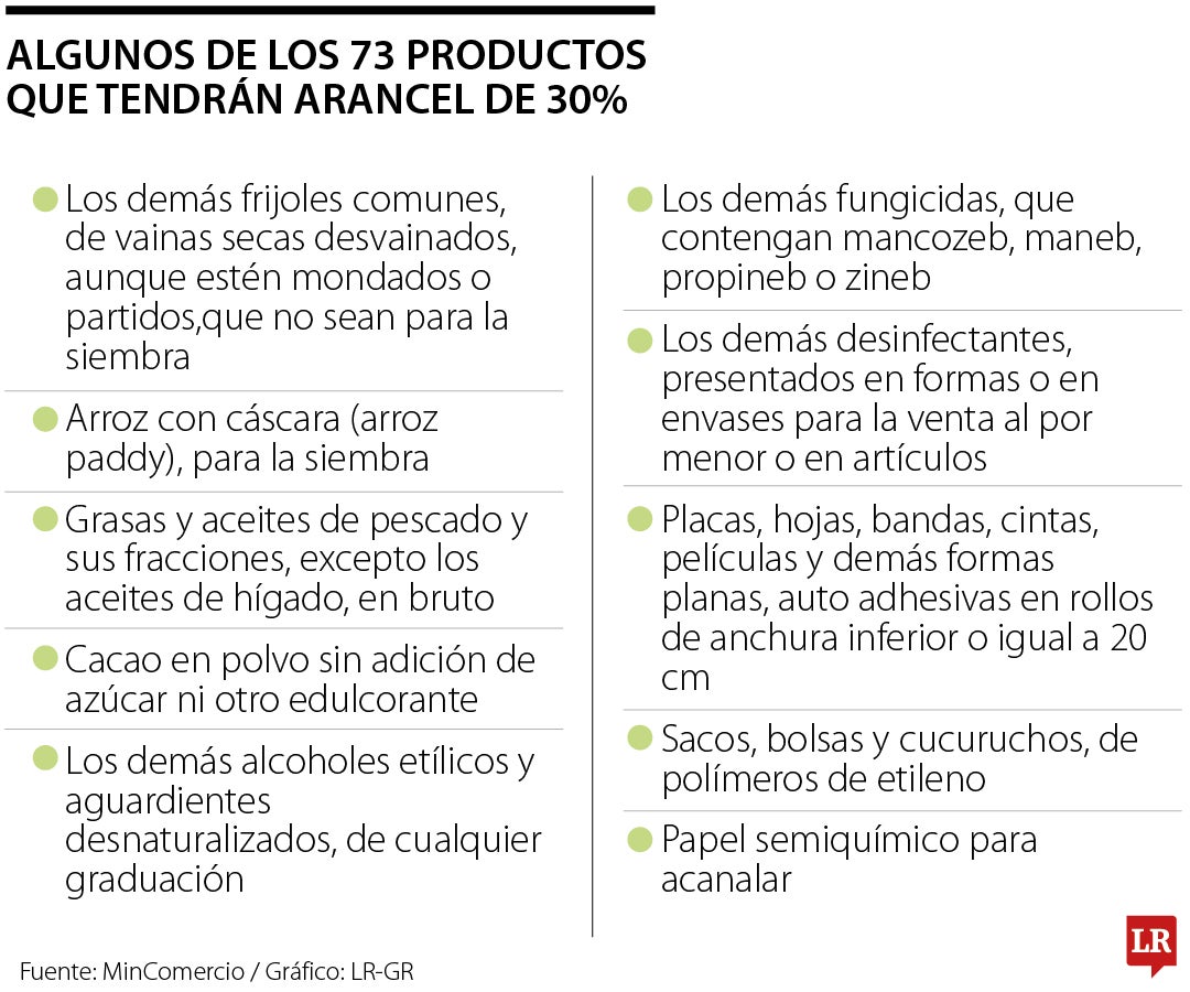 El Ministerio de Comercio definió los productos cobijados por las medidas arancelarias frente a Ecuador. La decisión contempla la aplicación de un arancel ad valorem de 30% para 23 partidas arancelarias, desagregadas en 73 subpartidas, correspondientes a productos originarios de Ecuador, esta decisión fue adoptada por el Comité de Asuntos Aduaneros, Arancelarios y de Comercio Exterior.