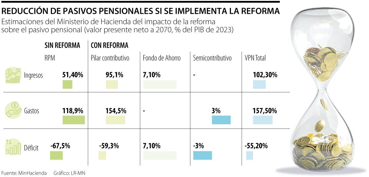 Según la Cartera de Hacienda, con la reforma el valor presente neto a 2070 de los déficits se podría reducir hasta 55,2% del PIB