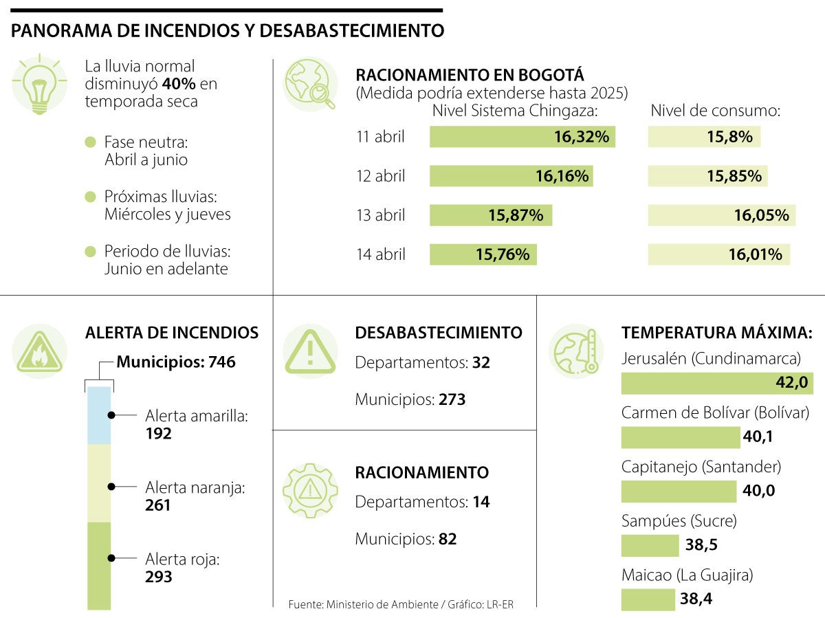 En 24 de 32 departamentos se ha presentado desabastecimiento. Además, MinAmbiente señaló que lluvia normal disminuyó 40%
