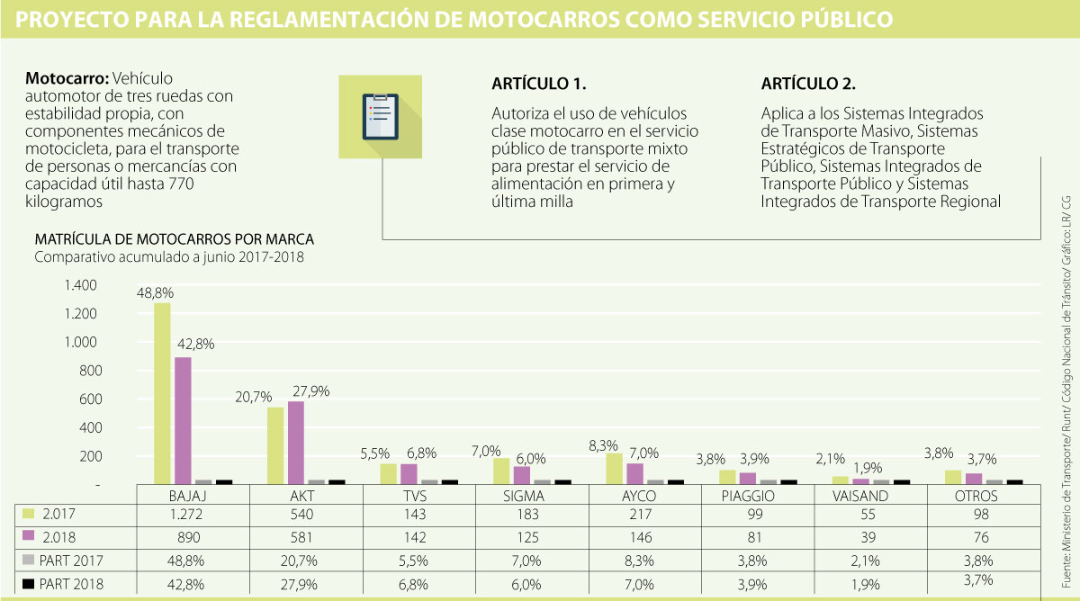 El proyecto de resolución establece que los motocarros, que constan de tres ruedas y pueden transportar personas o mercancía de hasta 770 kilogramos, podrían operar en el servicio público de transporte mixto y ser alimentadores en la primera y última milla de los sistemas de transporte público de pasajeros.