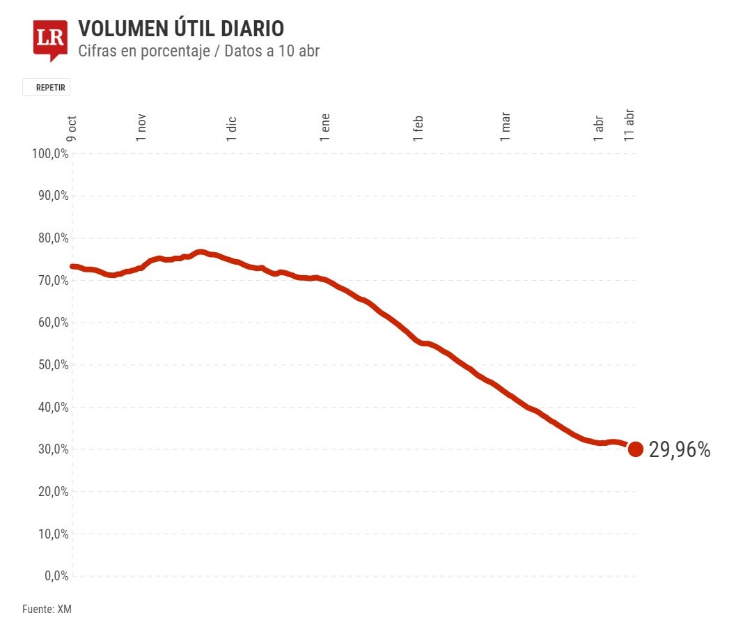 La situación de los embalses sigue siendo crítica, en días pasados se temió que bajaran hasta 30%, situación que ya se dio el pasado 11 de abril, cuando alcanzaron un nivel de 29,96%, añadiéndole a la preocupación sobre el suministro de agua, el de energía.