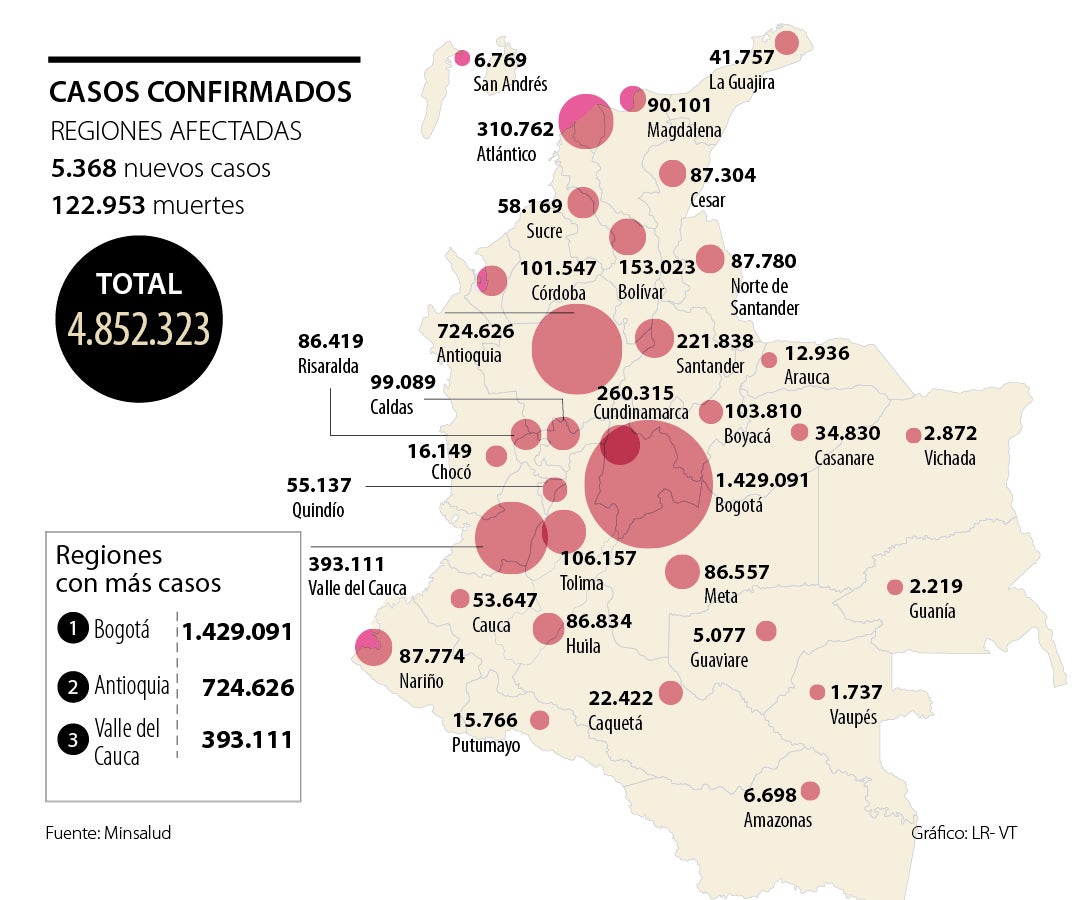 En este reporte también se conoció que hubo un total de 185 muertes relacionadas con el virus, por lo que a la fecha van 122.953 fallecidos; en paralelo, los recuperados ya completan 4.668.790.