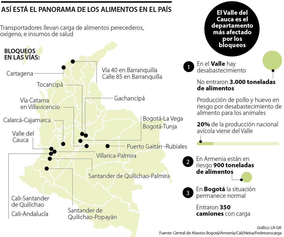 Ante las manifestaciones que comenzaron a nivel nacional la semana pasada, el Ministerio de Transporte hizo un llamado para que quienes participan en las protestas permitan la circulación de los transportadores que abastecen al país y a aquellos que transportan oxígeno y suministros esenciales para la salud.