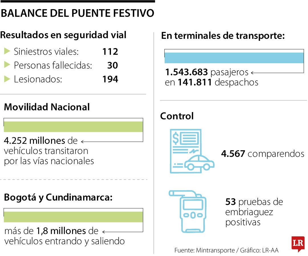 Tan solo en Bogotá y Cundinamarca se registraron más de 1,8 millones de vehículos entrando y saliendo, y en terminales de transporte se movilizaron 1,5 millones de pasajeros en 141.811