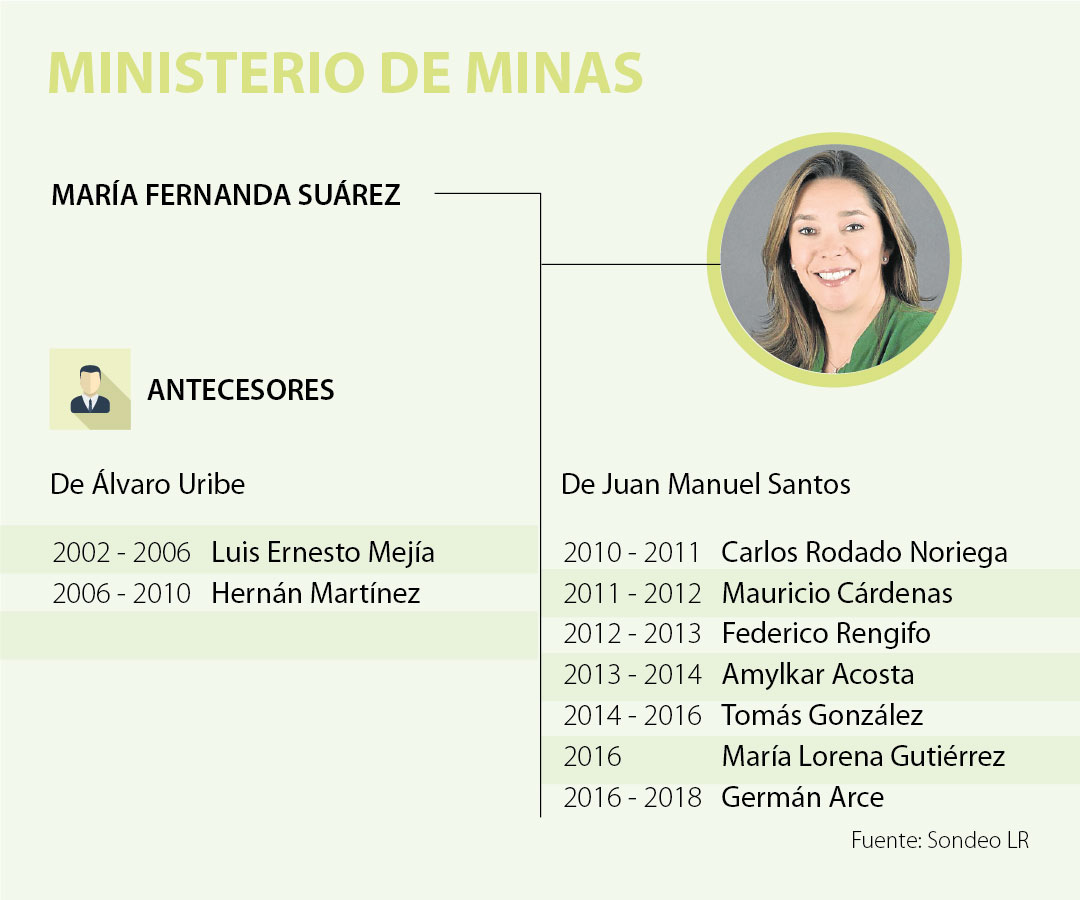 María Fernanda Suárez, quien trabajó como vicepresidenta de Ecopetrol, será la ministra de Minas y Energía a partir del 7 de agosto. De ella se resalta su juventud (44) años y según Duque, "con ella promoveremos una mayor diversificación de la matriz energética, la responsabilidad social y ambiental, la eficiencia y competitividad del sector”.