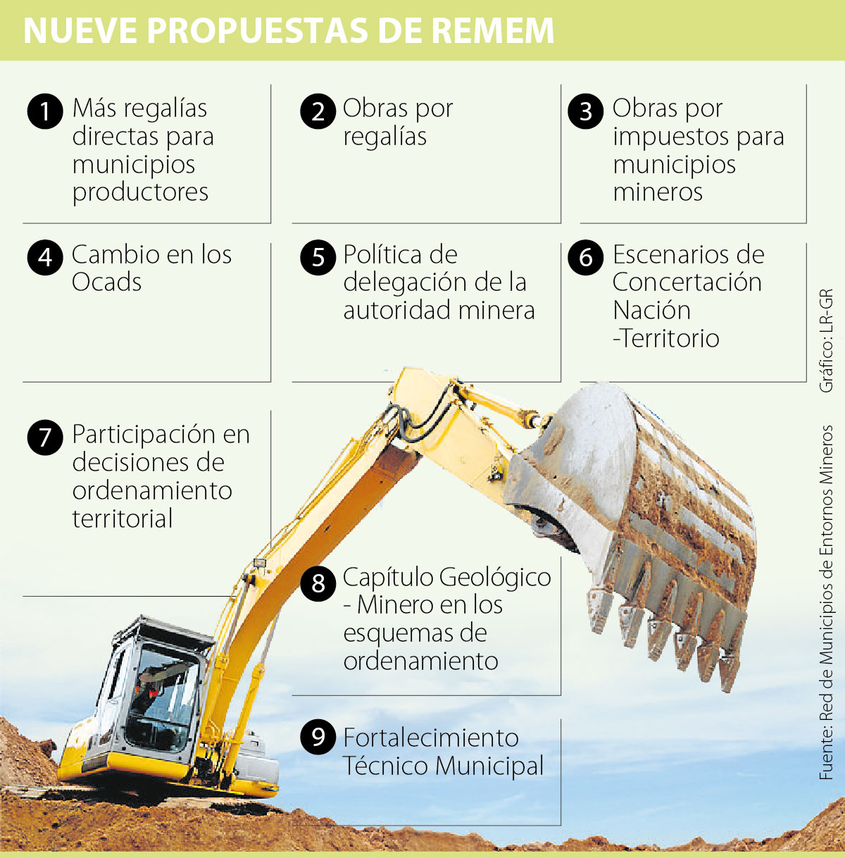 Dado que en Colombia se dice popularmente que donde se llevan a cabo proyectos extractivos hay pobreza, la Red de Municipios en Entornos Mineros (Remem), iniciativa de la Federación Colombiana de Municipios (FCM), ha desarrollado una serie de propuestas que buscan construir una política pública minera enfocada en los municipios donde se realizan estos proyectos, con el propósito de impulsar su desarrollo y satisfacer sus necesidades.