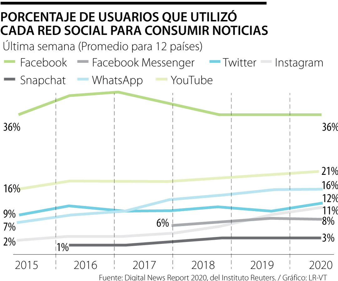 “En la mayoría de los países, los periódicos locales y sus sitios web siguen siendo la principal fuente de noticias sobre una ciudad o región en particular, llegando a cuatro de cada diez (44%) semanalmente. Pero encontramos que Facebook y otros grupos de redes sociales ahora se utilizan en promedio en alrededor de un tercio (31%) para noticias e información local, lo que ejerce más presión sobre las empresas y sus modelos comerciales”, dice el Digital News Report 2020, del Instituto Reuters.