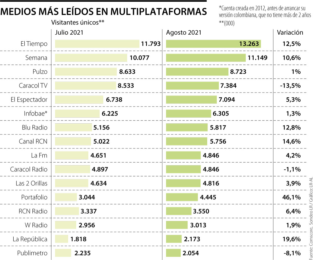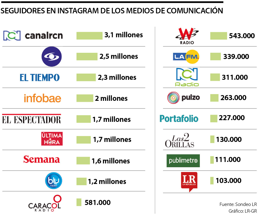 Última Hora Col (lanzado en noviembre de 2014) no figura en los sitios de mayor tráfico de Colombia en Comscore, a pesar de tener sitio web; sin embargo, es un referente en Instagram, donde tiene una comunidad de 1.7 millones de seguidores, principalmente jóvenes, y rivaliza con los medios que sí figuran, como El Tiempo, Semana, El Espectador, Pulzo e Infobae. Comscore es la polémica medición y ranking de audiencia de sitios web que usan los anunciantes para hacer su inversión publicitaria.