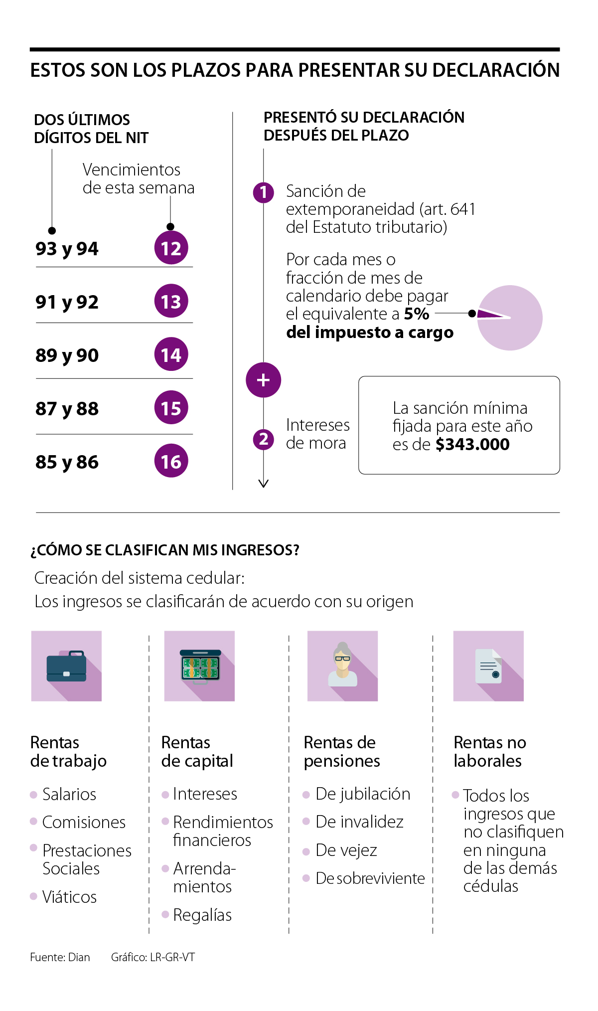 Aquellas personas que dejaron para el último día este trámite se encontraron con que la plataforma no funcionaba. Por ejemplo, los que tenían un número de identificación tributaria (NIT) acabado en 95 y 96 tenían como plazo máximo para presentar dicho trámite hasta el pasado viernes 9 de agosto o ayer lunes les tocaba a los contribuyentes que tenían cédulas terminadas en 93 y 94 (ver gráfico).