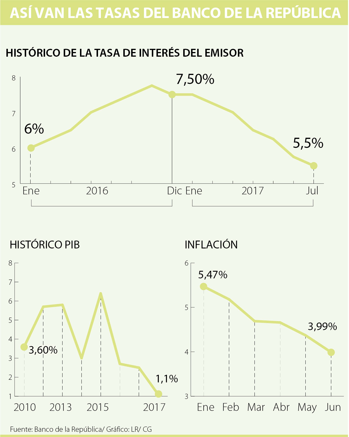 En la séptima junta la tasa de intervención quedó en 5,50%. Con esto se ha reducido el tipo de interés 200 puntos en 2017