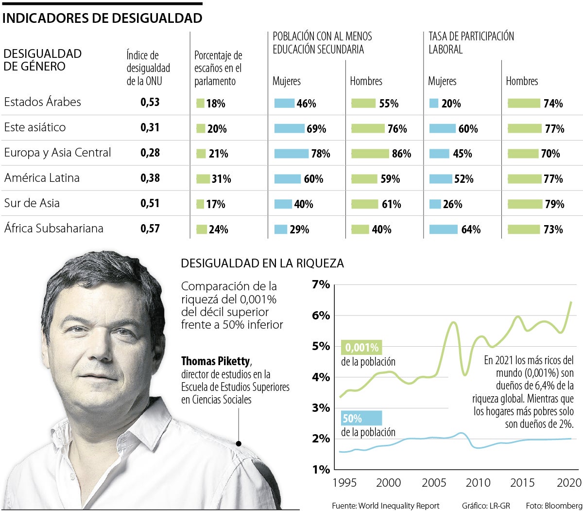 Piketty explicó que las mujeres aún tienen una carga muy alta, tanto en el trabajo remunerado como en las labores del cuidado.