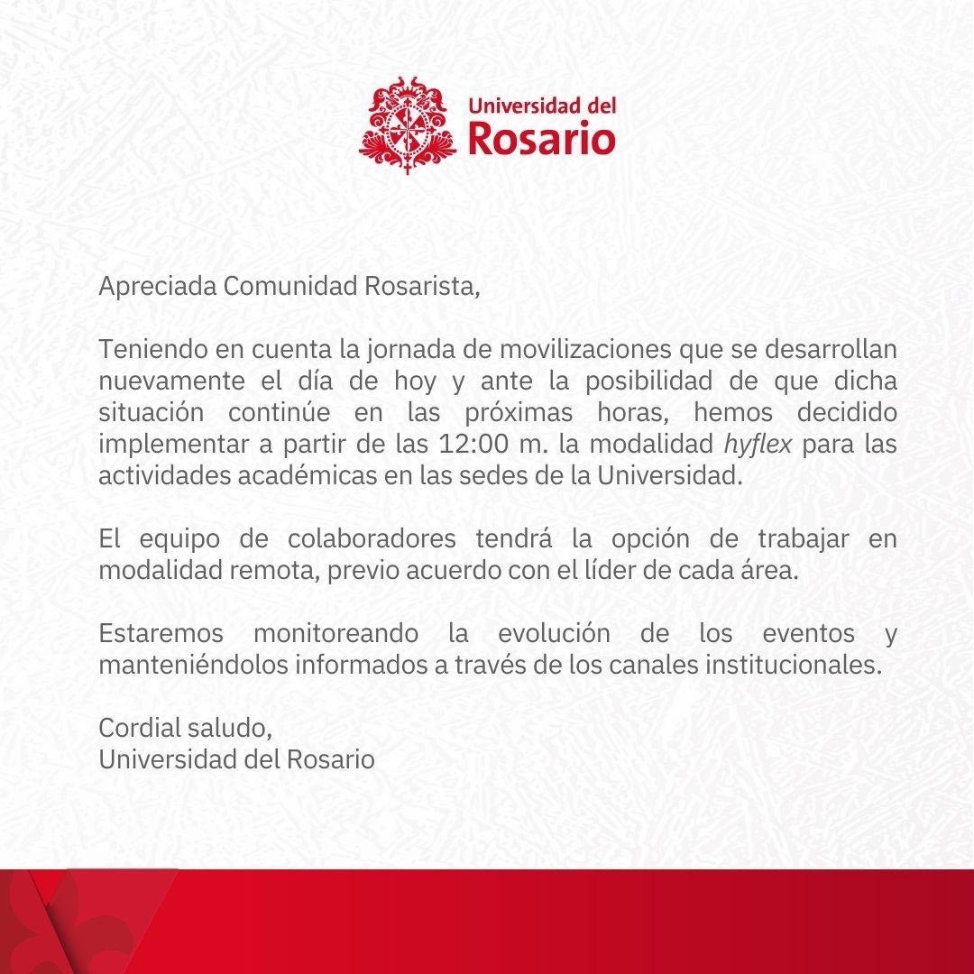Debido al paro de camioneros, la Universidad Javeriana decidió llevar a cabo sus actividades académicas y administrativas de este miércoles de manera virtual. La información sobre la realización de las ceremonias de grado programadas para el jueves y viernes se anunciará mañana