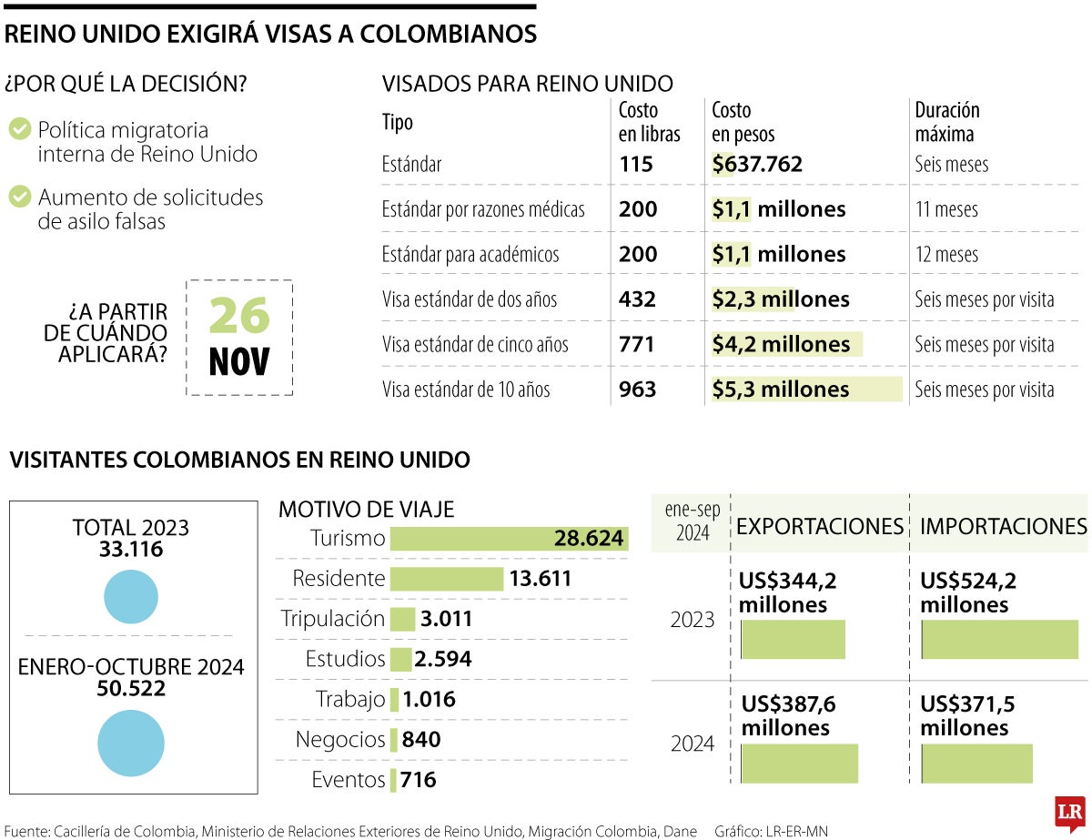 Según informó la embajada británica en Colombia, esta decisión, “que no fue fácil”, se tomó como consecuencia de un aumento “significativo” en la migración irregular, especialmente desde 2022.