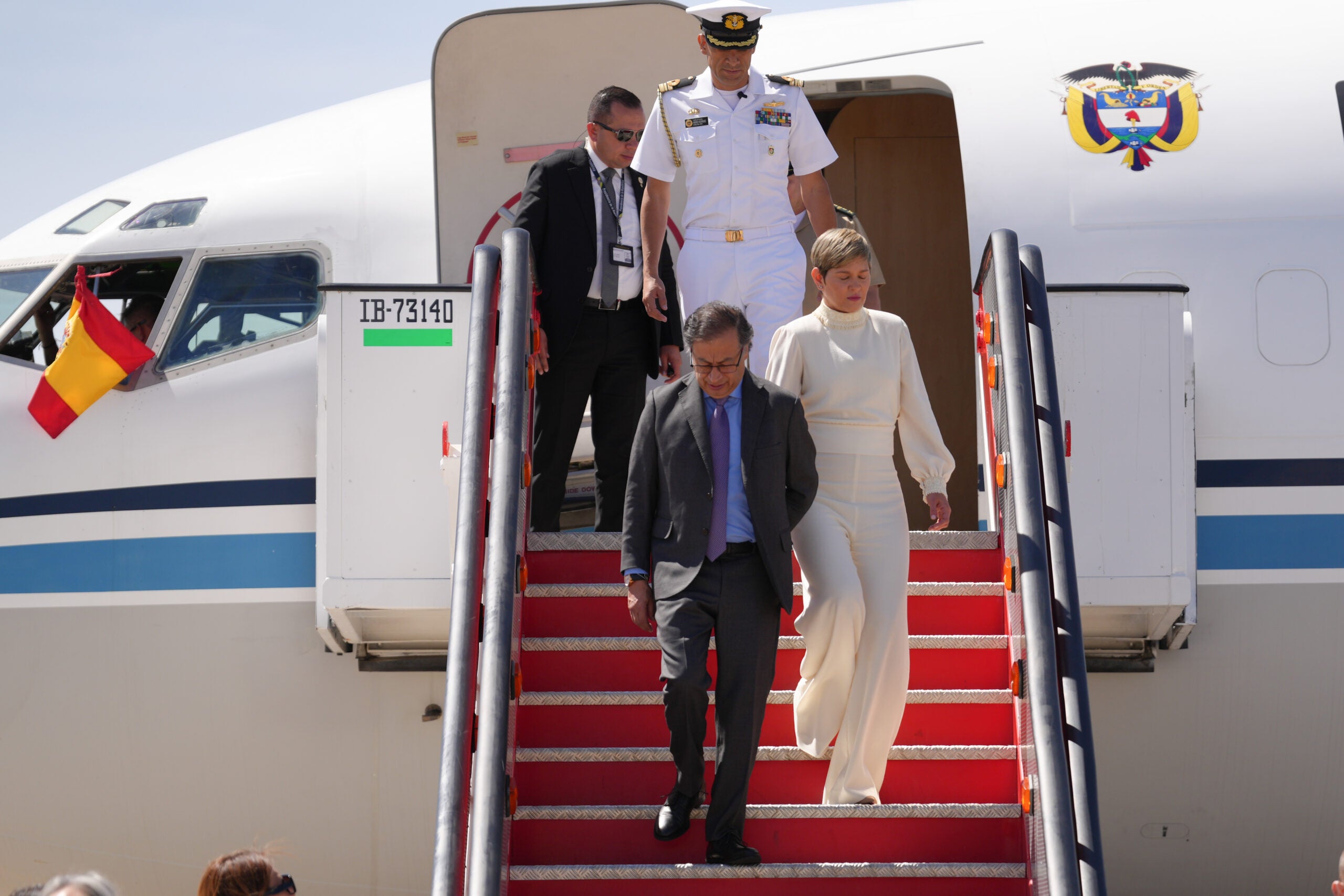 Inició la visita de Estado del presidente, Gustavo Petro, en España. El primer mandatario llegó al Aeropuerto Adolfo Suárez, Madrid-Barajas, acompañado de la Primera Dama, Verónica Alcocer.