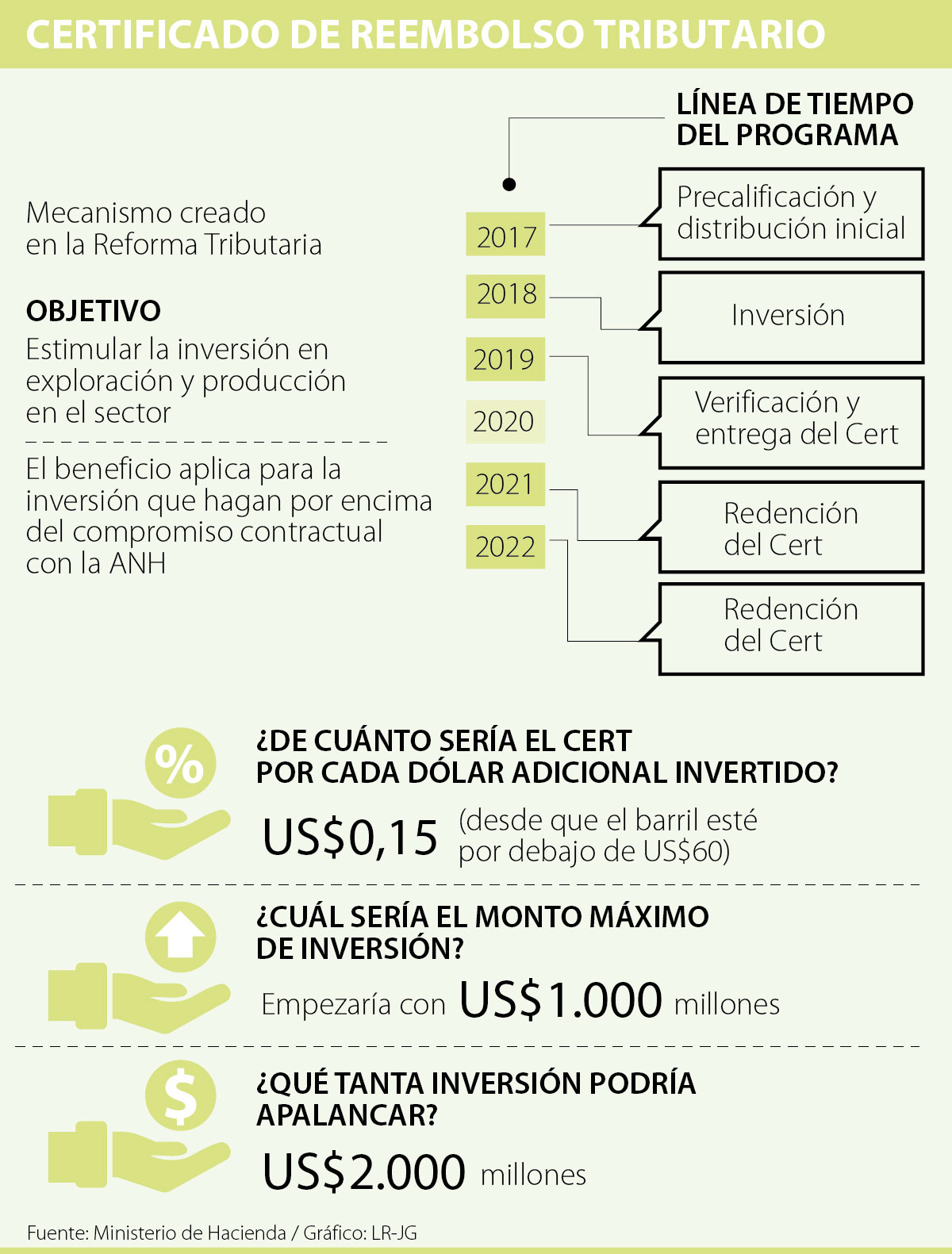 Según Cárdenas, por cada dólar adicional habría un incentivo de US$0,15 (siempre y cuando el barril esté por debajo de US$60) y aplicará, inicialmente, por un monto de máximo de US$1.000 millones. No obstante, Cárdenas indicó que es importante la retroalimentación de los empresarios.