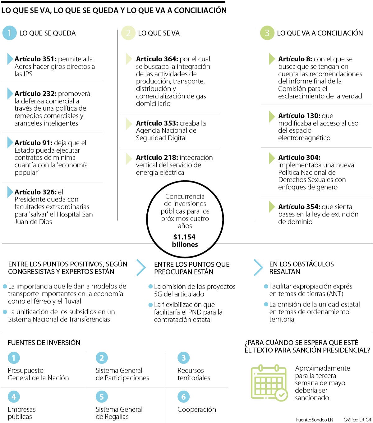 Artículos como el que creaba la Agencia Nacional de Seguridad Digital, el 364, y el 218 quedaron por fuera del PND ya que ambas cámaras no le dieron el visto bueno. Estos, según algunos representantes, se convierten en golpes certeros al proyecto que presentó y avaló el Gobierno.