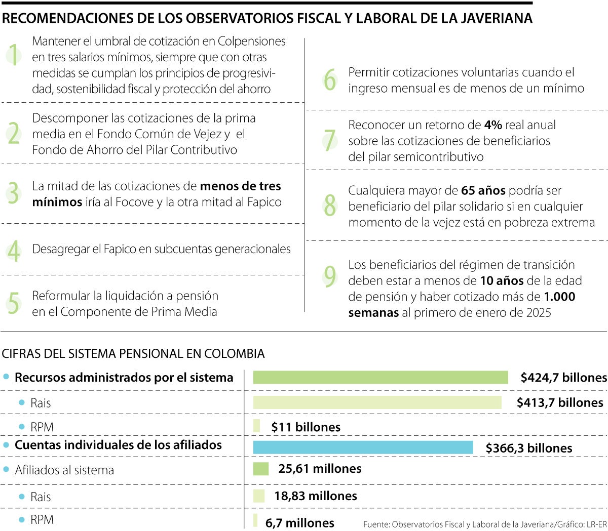El Gobierno propone que el régimen de transición sea a partir de las 1.000 semanas, pero los Observatorios agregan que sea un poco más específico, cumpliendo no solo el requisito de las 1.000 semanas, sino también estar a menos de 10 años de la edad de pensión al primero de enero de 2025. “Esas son las motivaciones que tenemos para acotar más los beneficios del régimen de transición, teniendo en cuenta que las pensiones del RPM hoy son muy subsidiadas. Con esta medida disminuimos el costo fiscal”, dijo Pardo.
