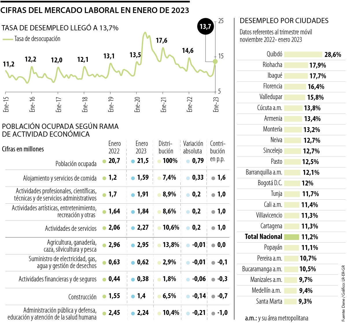 El Dane entregó los resultados de desempleo para enero, con una tasa de 13,7% y cerca de 3,4 millones de personas desocupadas