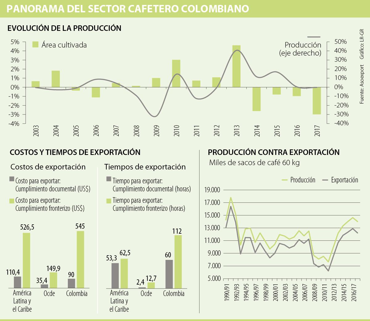 Dentro de la estructura de costos del proceso de comercialización de café, el más alto viene por el transporte. Los fletes, las carreteras y los tiempos de espera son algunas de los retos que deben afrontar los exportadores, que buscan alternativas para bajar sus costos.