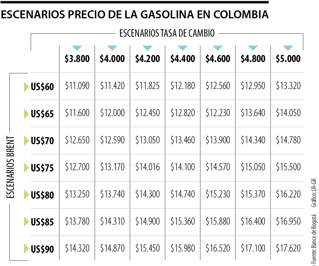Julio César Vera, presidente de la Fundación Xua Energy, coincidió en que ya no va a ser tanto el aumento en el galón, pero su estimación es de $15.600. "No solo hay que tener en cuenta el diferencial de precios, sino también el efecto del IVA en el precio final". Aunque, hizo la salvedad de que se debe tener en cuenta el comportamiento de la tasa de cambio en el resto del año.