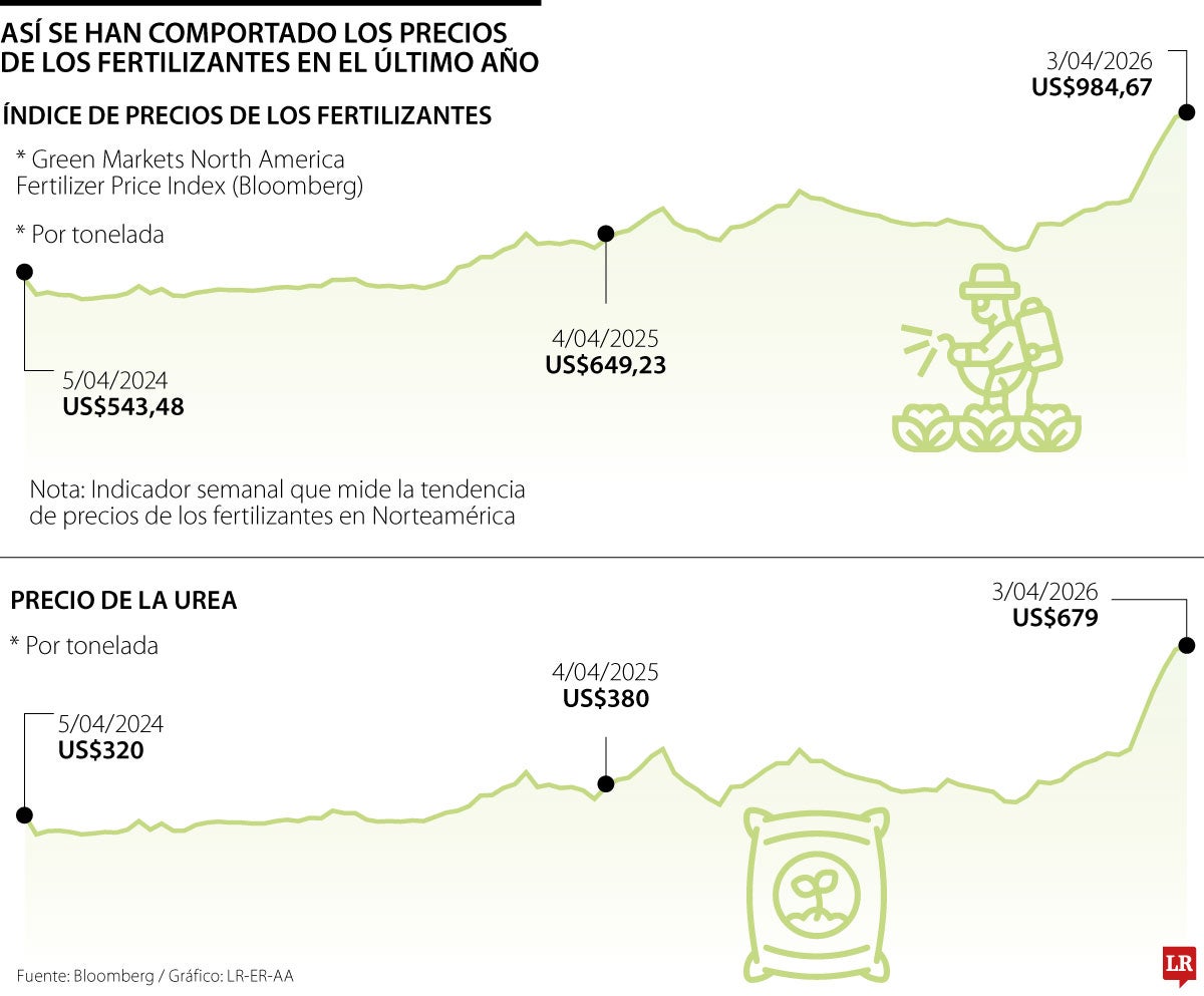 Desde el inicio de las tensiones, los precios internacionales de estos productos han aumentado 30%. Si se analiza el último año, el alza en la canasta de fertilizantes alcanza 52% frente a abril de 2025. Colombia importa 90% de estas materias primas, lo que podría generar presiones inflacionarias.