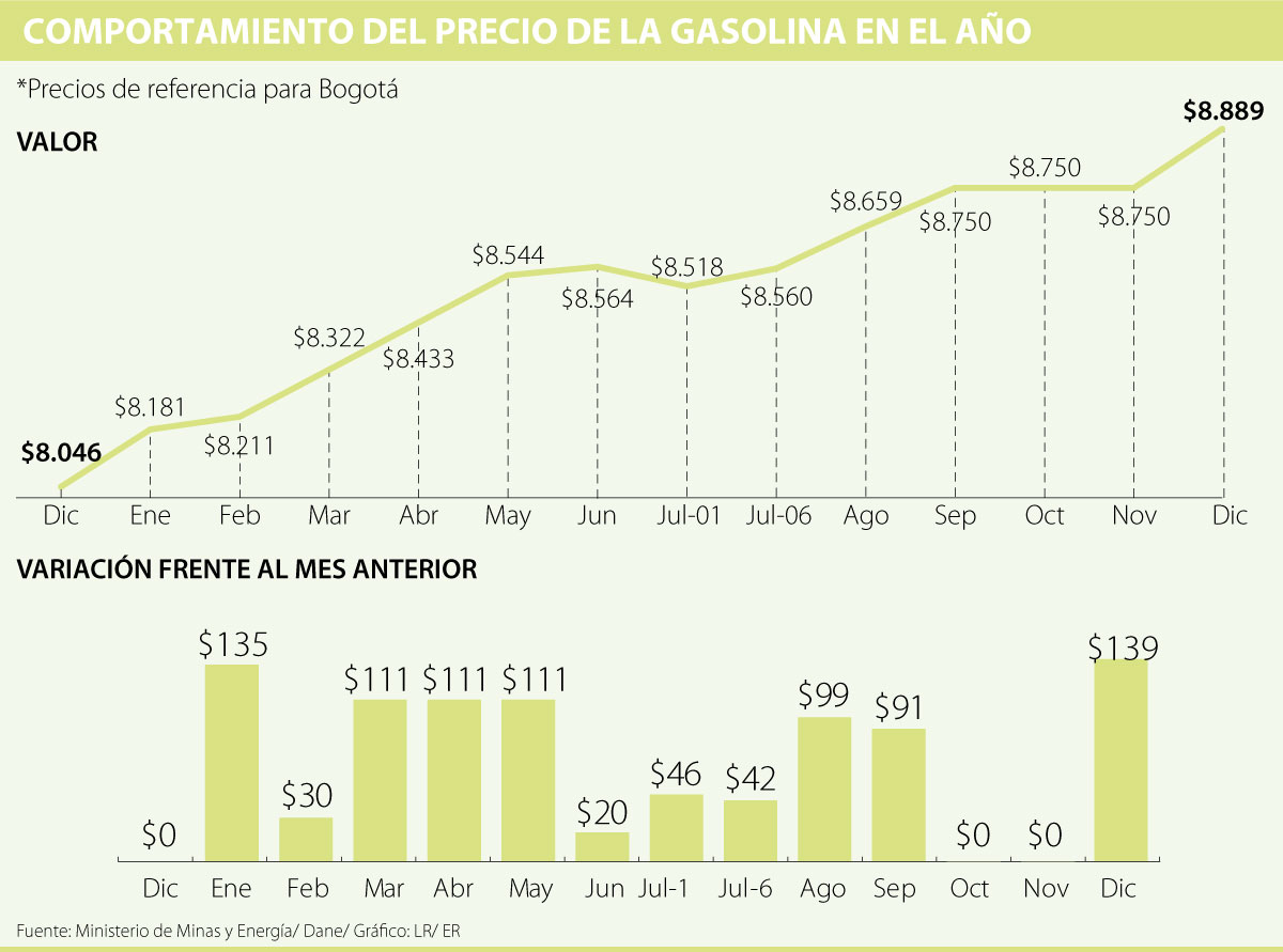 El Ministerio también dio a conocer que en la ciudad en la que más se pagará por los combustibles es Tunja, donde a partir del primero de enero un galón de gasolina costará $9.023 y uno de Acpm costará $8.319.
