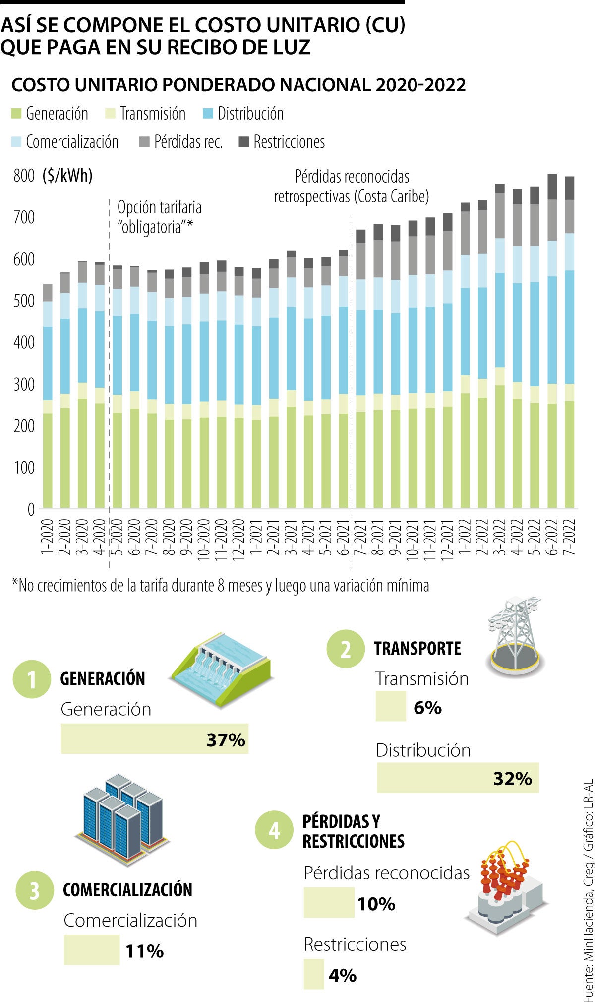 Entre lo más importante de las resoluciones emitidas por la Creg está involucrar a todos los actores de la cadena de la electricidad en la reducción de las tarifas eléctricas y de esta manera “aliviar la carga de los comercializadores, que son los que recaudan el dinero de las tarifas, permitiéndoles el diferimiento de, al menos, 20% de las obligaciones desde septiembre a diciembre de 2022 con los generadores, transmisores y distribuidores, cuyo periodo para pagar los dineros diferidos es de 18 meses”.