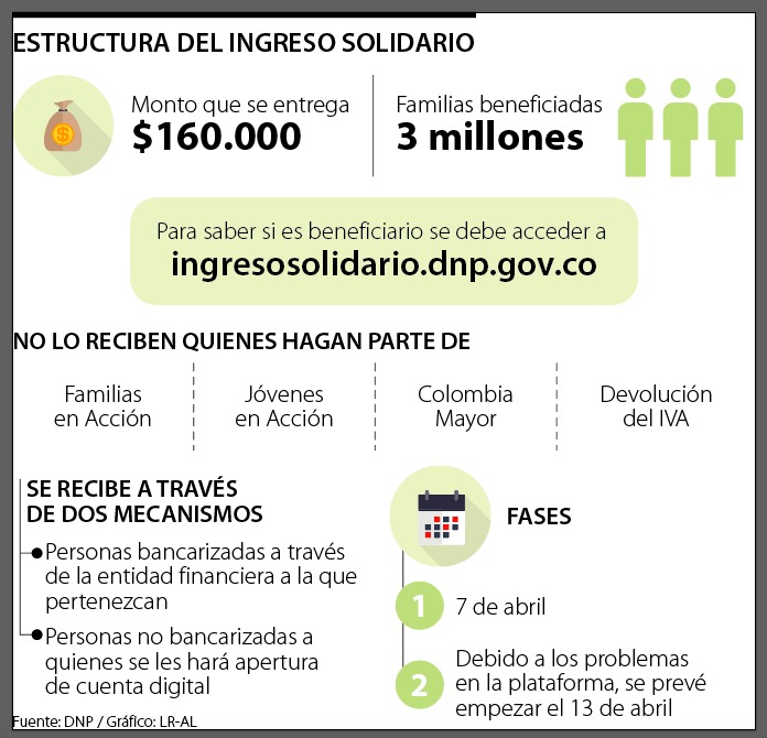 Por esta razón, el Ejecutivo, a través del Departamento Nacional de Planeación (DNP) lanzó el programa Ingreso Solidario, el cual busca beneficiar a tres millones de hogares que no hacen parte de los programas de transferencias monetarias del Estado, y que recibirán un giro por $160.000.