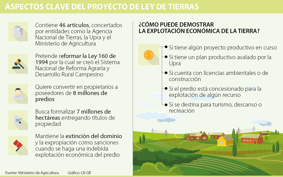 Pero las modificaciones no serían muchas. Según lo dio a conocer el Ministerio de Agricultura, se mantienen la extinción de dominio y la expropiación como sanciones extremas ante la inexplotación de los predios, pero dando más garantías para demostrar productividad.