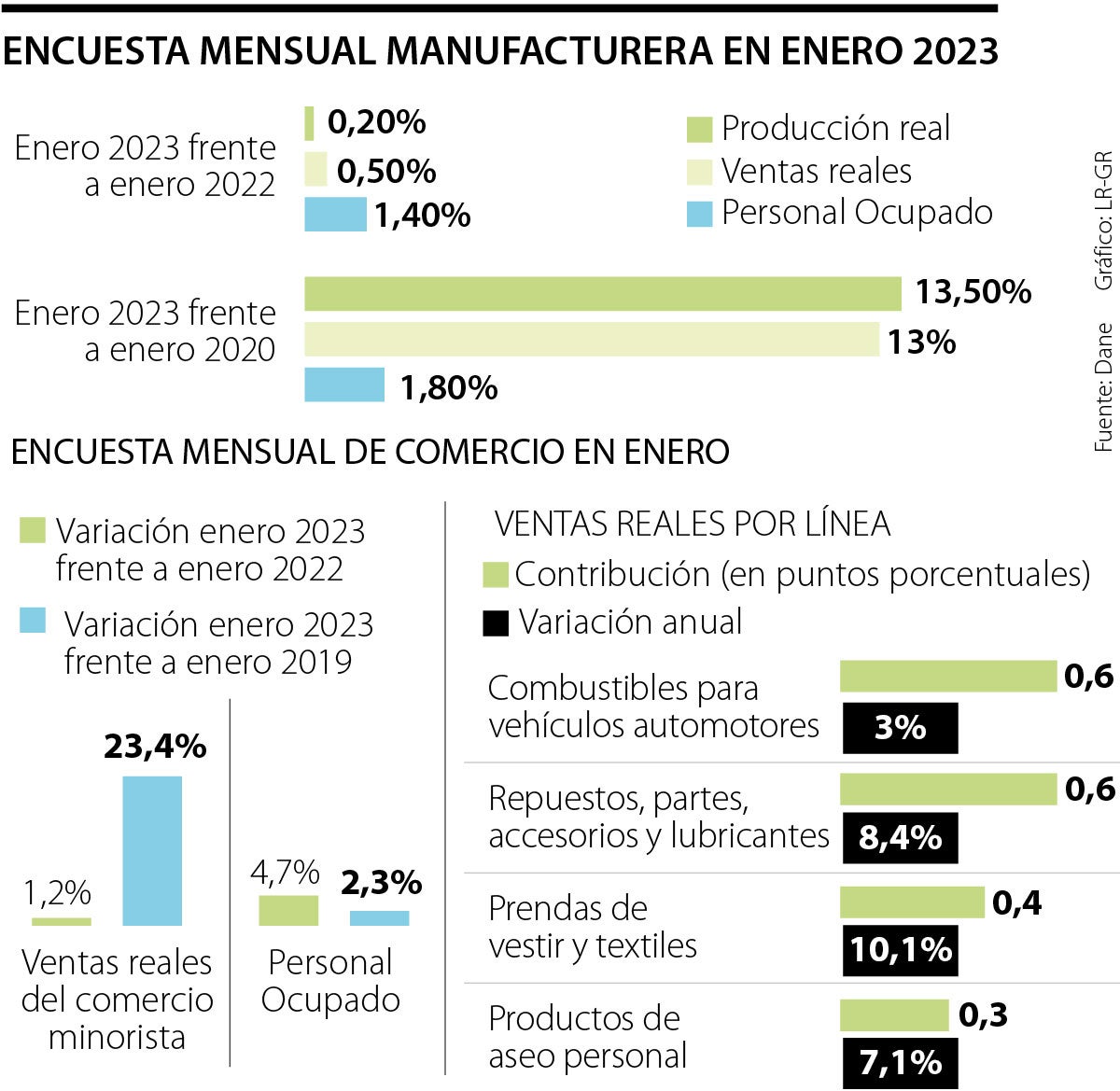 El Dane dio a conocer la última Encuesta Mensual Manufacturera con Enfoque Territorial (Emmet), en la que indica que la producción real de la industria manufacturera en enero tuvo una variación anual de 0,2% respecto a enero de 2022, cifra que según los expertos ya muestra una clara desaceleración de la economía del país.