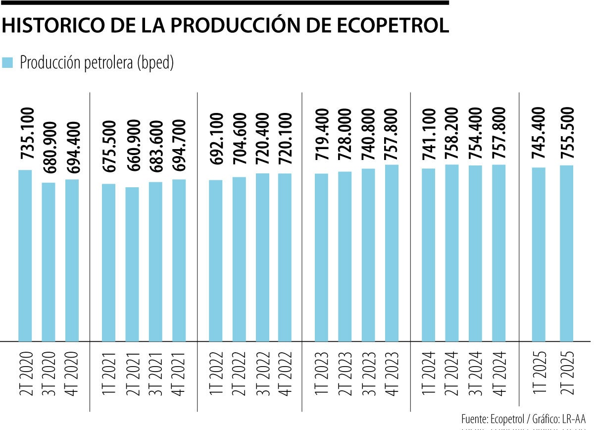 La producción de Ecopetrol alcanzó 755.000 barriles de petróleo por día en el segundo trimestre de 2025, lo que representa un incremento de aproximadamente 10.000 barriles frente a las cifras reportadas del primer trimestre de este año.