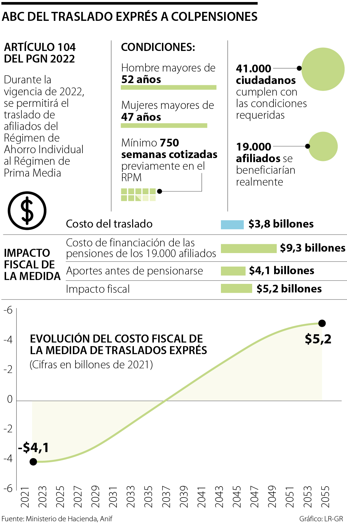Uno de los artículos más controversiales dentro del proyecto del Presupuesto General de la Nación (PGN) de 2022 es el 104, que autoriza el traslado exprés de afiliados de fondos de pensiones privadas hacia Colpensiones. De acuerdo con expertos consultados por LR, esta medida incrementaría el déficit fiscal a largo plazo, lo cual va en contravía del propósito de sanear las finanzas públicas tras la pandemia.