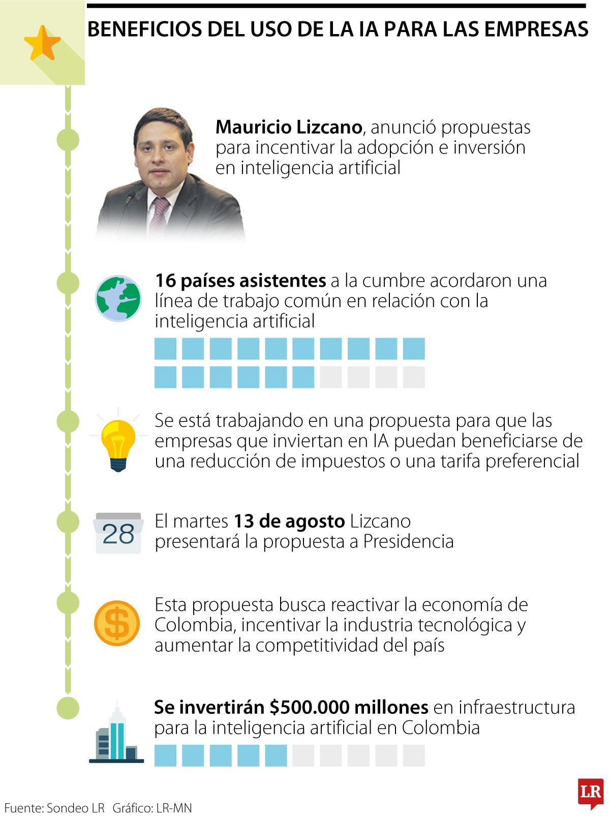 LR le preguntó al ministro Lizcano de qué trataría esta propuesta, a lo que este explicó que “la propuesta que vamos a hacerle al Congreso y al Gobierno es que haya una deducción de impuestos en la ley de financiamiento para empresas que inviertan y desarrollen procesos de inteligencia artificial en Colombia. Como una forma de reactivar la economía del país, para hacer política contracíclica y como una forma de incentivar a una industria que va a generar más productividad y más competitividad en el país”.