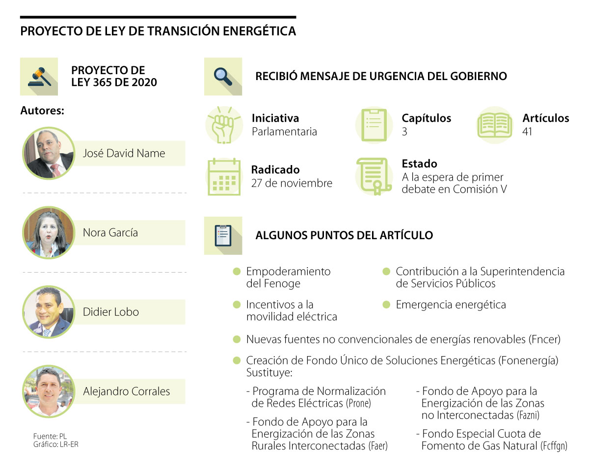 Finalmente, está la creación del Fondo Único de Soluciones Energéticas (Fonenergía), que entraría a sustituir el Programa de Normalización de Redes Eléctricas (Prone), el Fondo de Apoyo para la Energización de las Zonas Rurales Interconectadas (Faer), el Fondo de Apoyo para la Energización de las Zonas no Interconectadas (Fazni), y el Fondo Especial Cuota de Fomento de Gas Natural (Fcffgn).