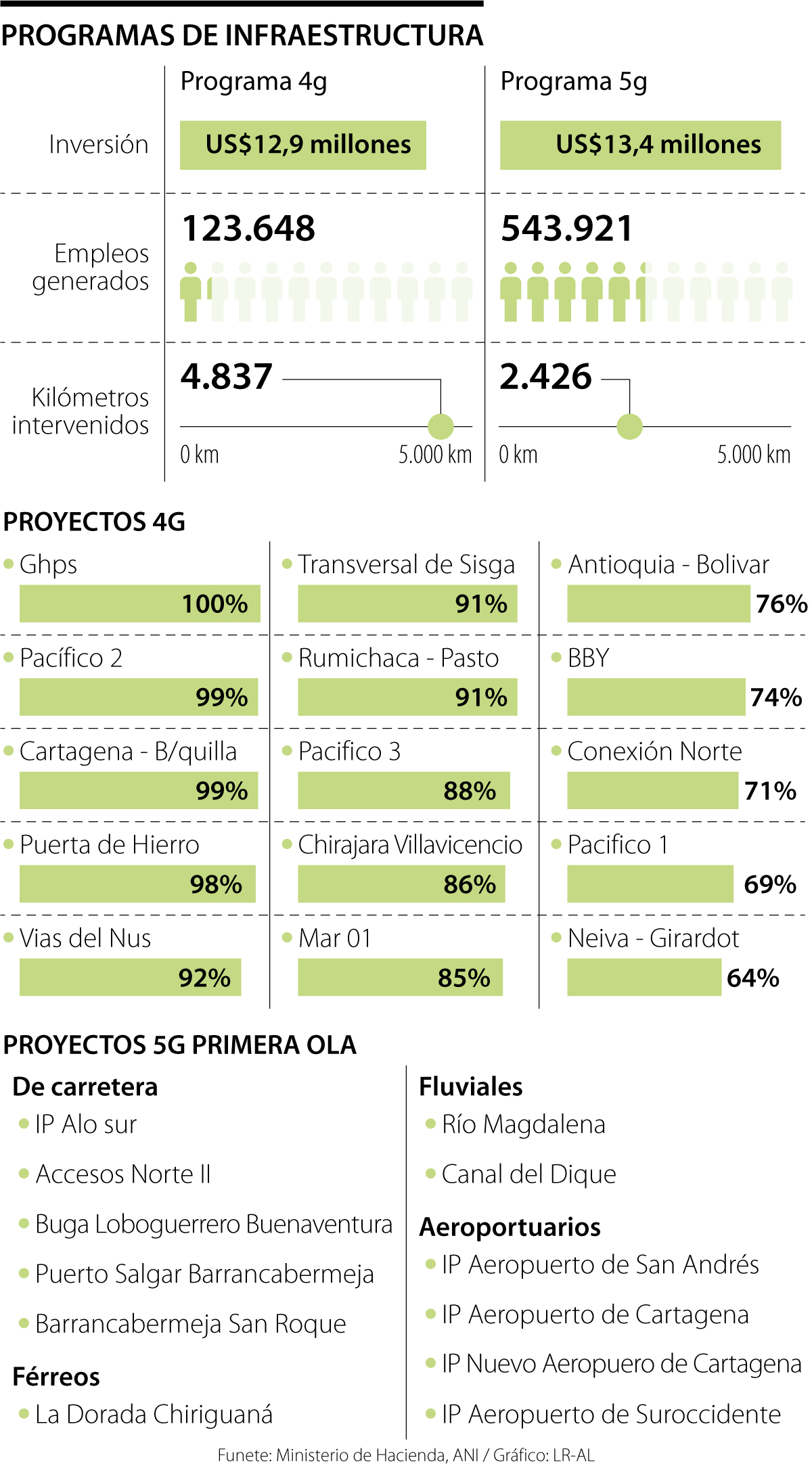MinHacienda dijo que hay cinco proyectos de vías, dos fluviales, cuatro aeroportuarios y uno férreo en proceso de estructuración con 5G
