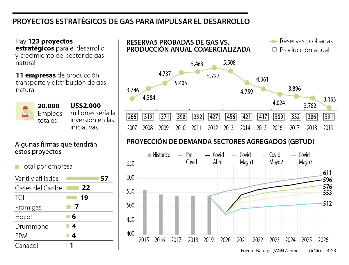A la lista de los proyectos estratégicos para impulsar la inversión, el empleo y la reactivación económica se sumaron 123 iniciativas más. Se trata de un plan que presentó la Asociación Colombiana de Gas Natural (Naturgas), al presidente Iván Duque, en el que se le solicitó el apoyo para sacar adelante una centena de proyectos gasíferos que benefician a más de 70 municipios.