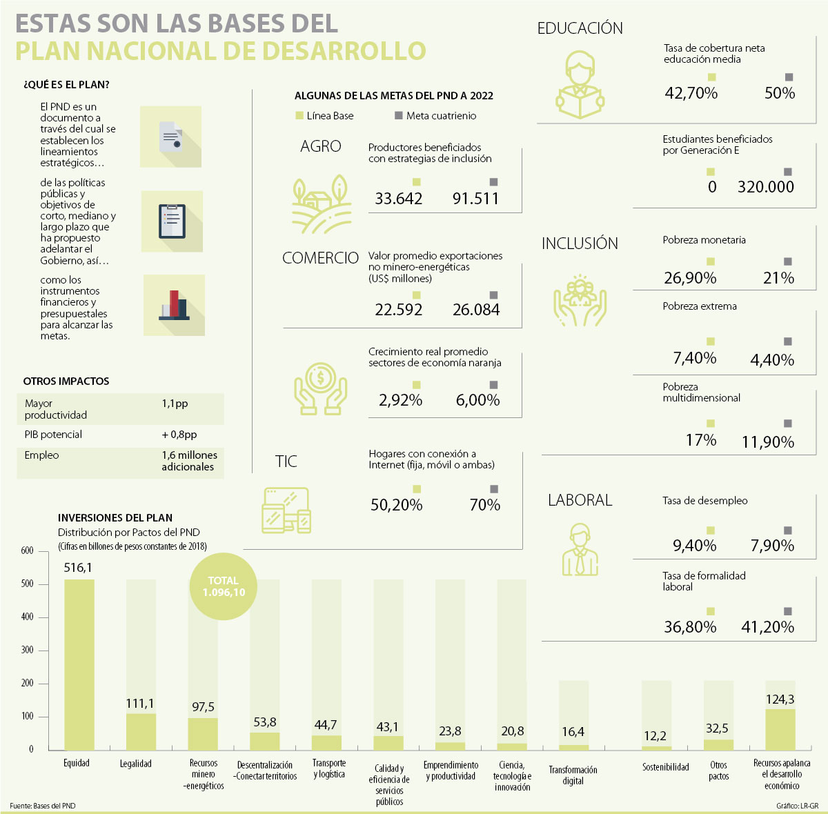 En total, este Plan tendrá una inversión de $1.100 billones para definir las políticas del país durante estos cuatro años. En concreto, el denominado ‘Pacto por Colombia’ buscará centrarse en las regiones, las que recibirán recursos por más de $780 billones.