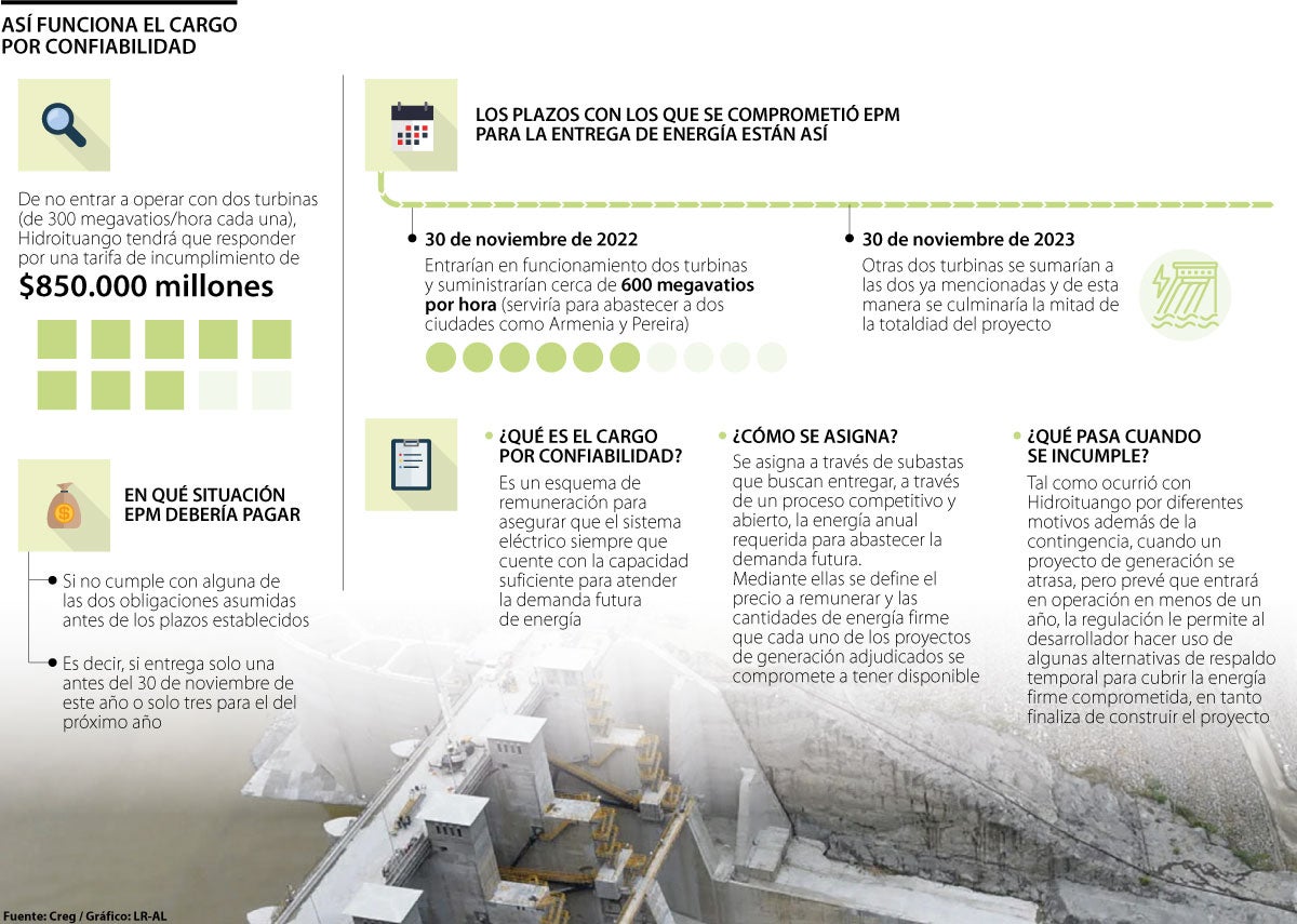 Si EPM llega a incumplir con los plazos estipulados para Hidroituango (30 de noviembre), esta figura viene acompañada de una tarifa millonaria que le cobrará la Creg