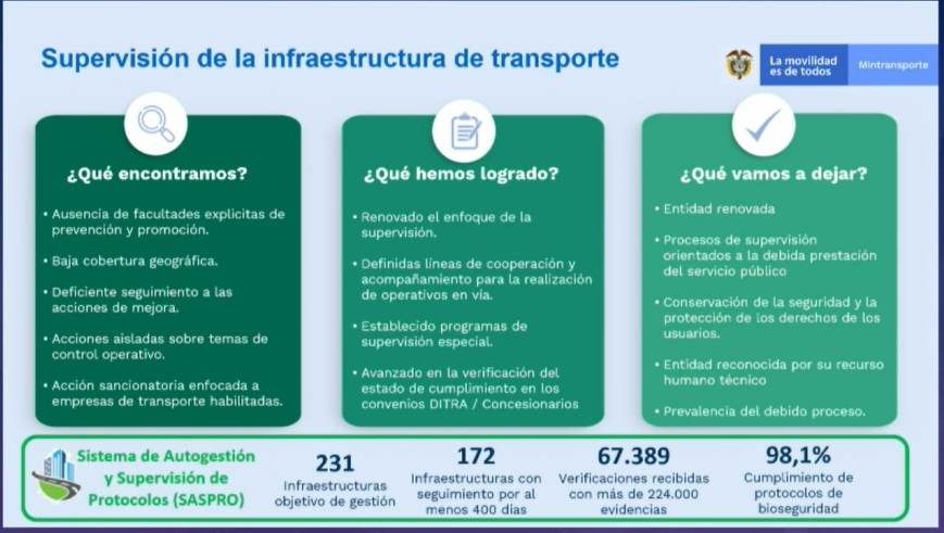 La funcionaria explicó que a pesar de que aún es necesario mejorar en muchos proyectos, destacó que el Ministerio de Transporte deja varios instrumentos nuevos y nuevas formas de financiación para sacar adelante la ejecución de proyectos.
