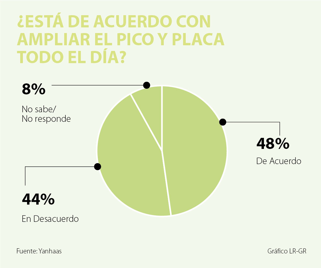 Sobre los temas sensibles a la ciudadanía, vale la pena destacar que 48% de los encuestados está de acuerdo con ampliar el pico y placa todo el día. Además, 82% cree que el próximo alcalde debe seguir con la segunda etapa de Parques del Río.