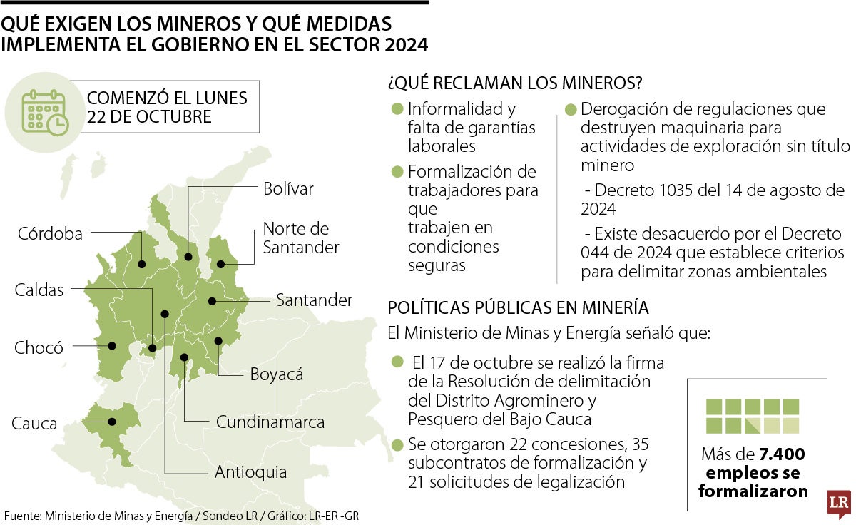 El Ministerio detalló que se definieron 14 municipios mineros y recalcó que la nueva Ley Minera propende “responder a las dinámicas del sector”. Susana Muhamad, ministra de Ambiente, dijo que habrá una coordinación institucional para atender las peticiones de los manifestantes.